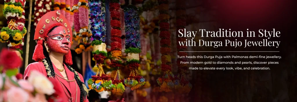 Whether you’re hopping from pandals to afterparties, or just showing up for the bhog and the selfies, here’s your jewellery guide — curated to slay every saree, every celebration, and every stare.